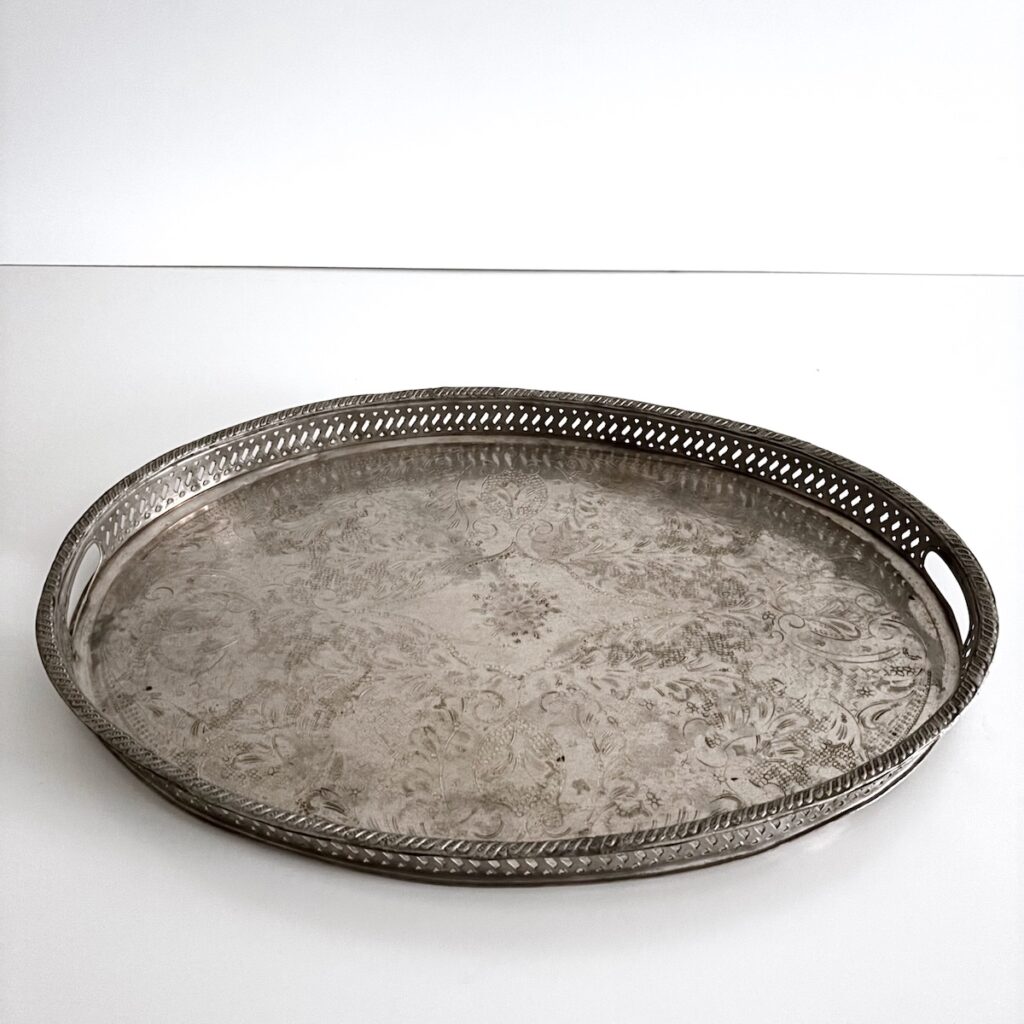 Vintage serveringsbakke oval – nysølv