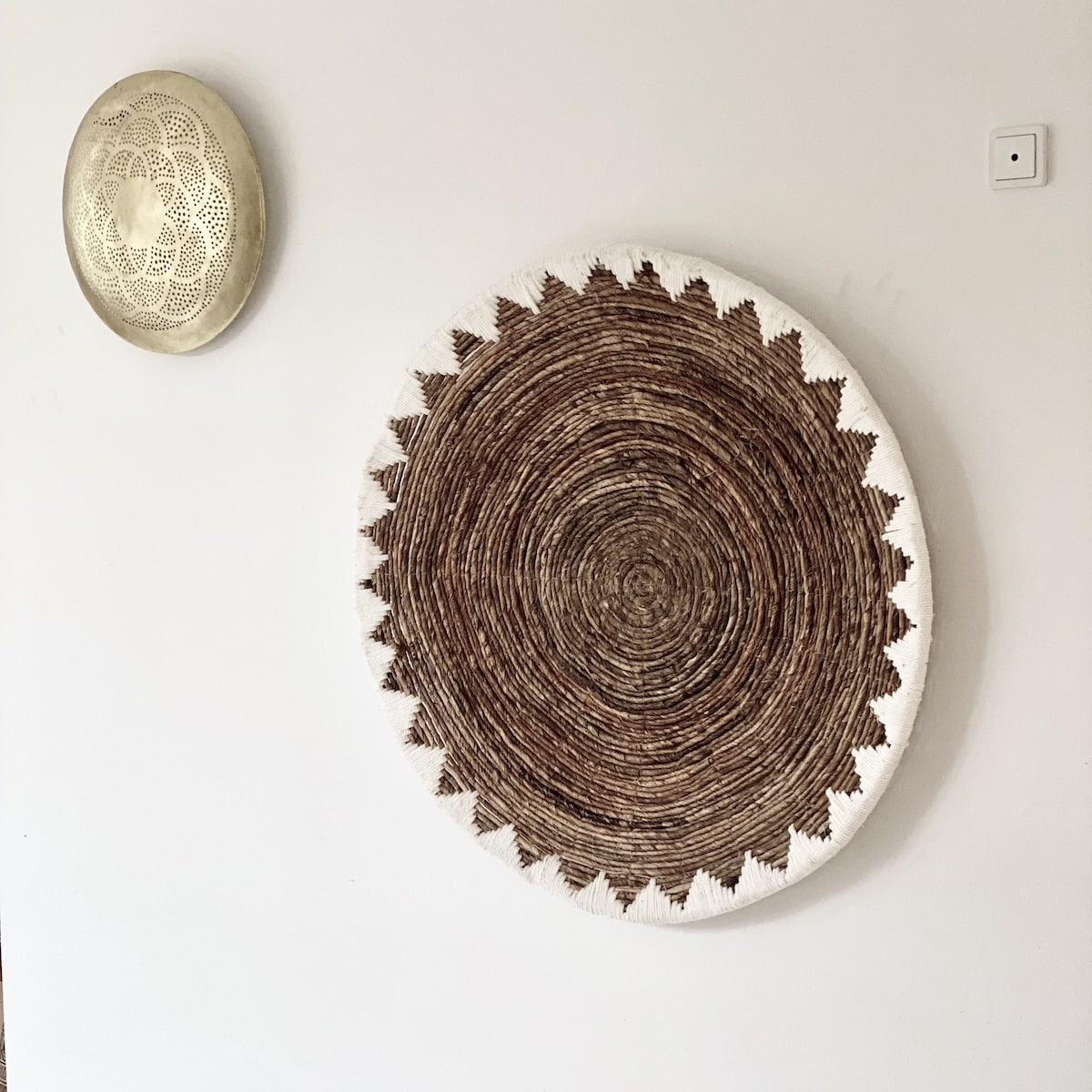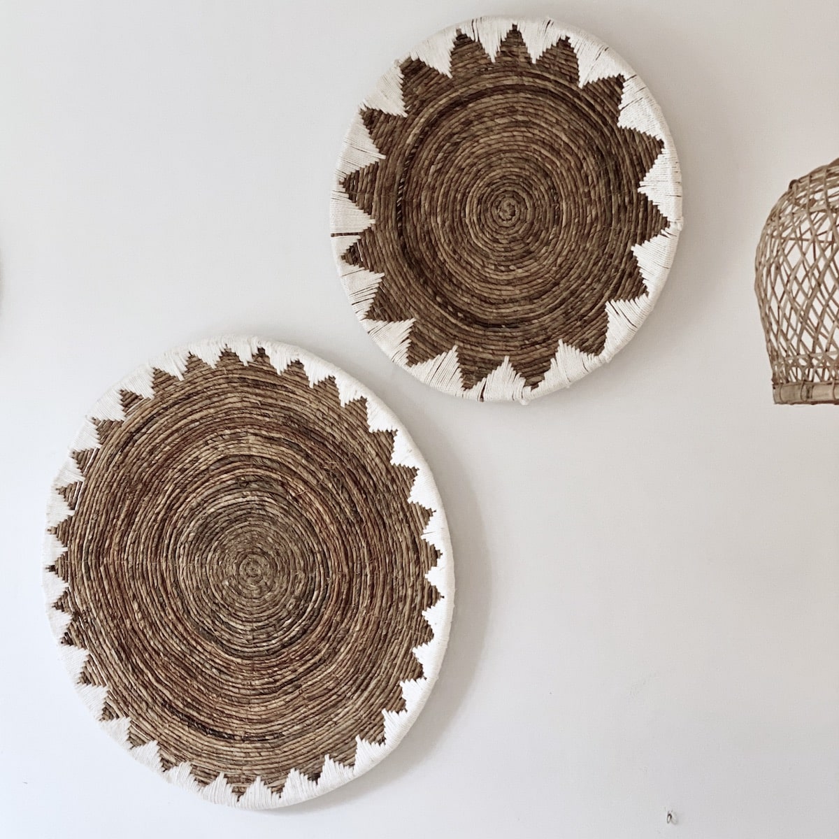 Det store smukke Bali Abaca Segitiga fad er håndflettet i kraftige bananblade og dekoreret med hvidt garn rundt i kanten. Fadet er utroligt smukt som deko ophæng på væggen – alene eller i et samspil med andre ting. Du kan også bruge det som et stort fad på gulvet med blade og aviser, fjernstyrer, brænde, tæpper, håndklæder, garnnøgler mm. Eller sæt det på det store spisebord til frugt og grønt – eller blot som pynt og ‘fyld’ på bordet, hvis I kun spiser 2 personer:).