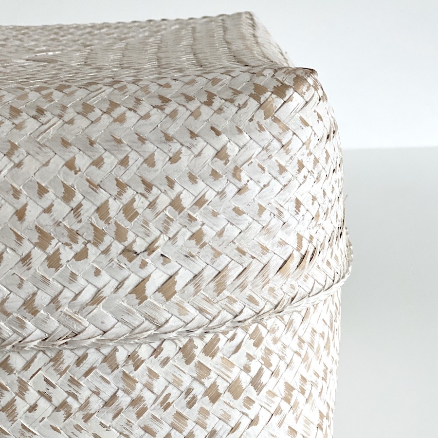 Den smukke kurveæske fra Bali er håndflettet af lokale kvinder i palmeflet. Kurvetypen bliver oprindeligt anvendt som opbevaring af ris og andre madvarer, men er også utroligt dekorativ at have stående i hjemmet til opbevaring af stort set alt. Brug den til toiletpapir, føntørrer mm på badeværelse, blade, strikketøj og stearinlys i køkkenet eller stuen, til undertøj og strømper i soveværelset eller dit Walk-in, på børneværelset, o.s.v.