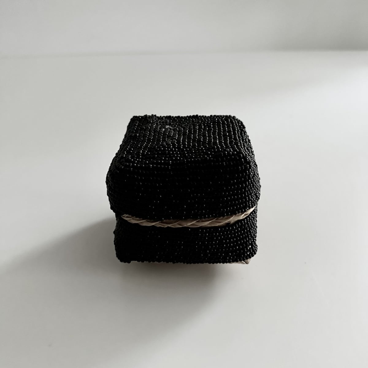 OPRINDELSE: Æsken er håndflettet på Bali og hver perle er påsyet i hånden. Selve æske typen anvendes oprindeligt til opbevaring af ris og andre madvarer mens den med perler påsyet anvendes til pynt og opbevaring af småting