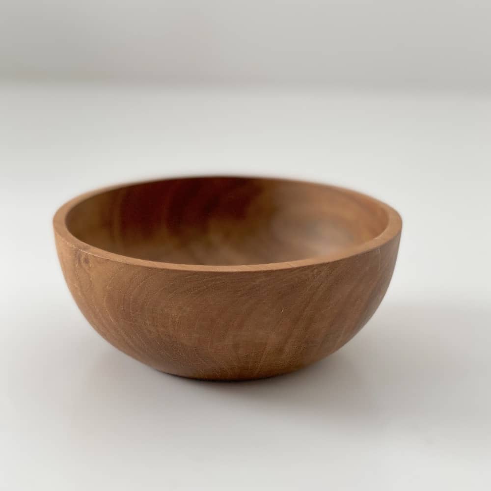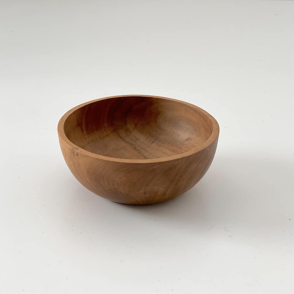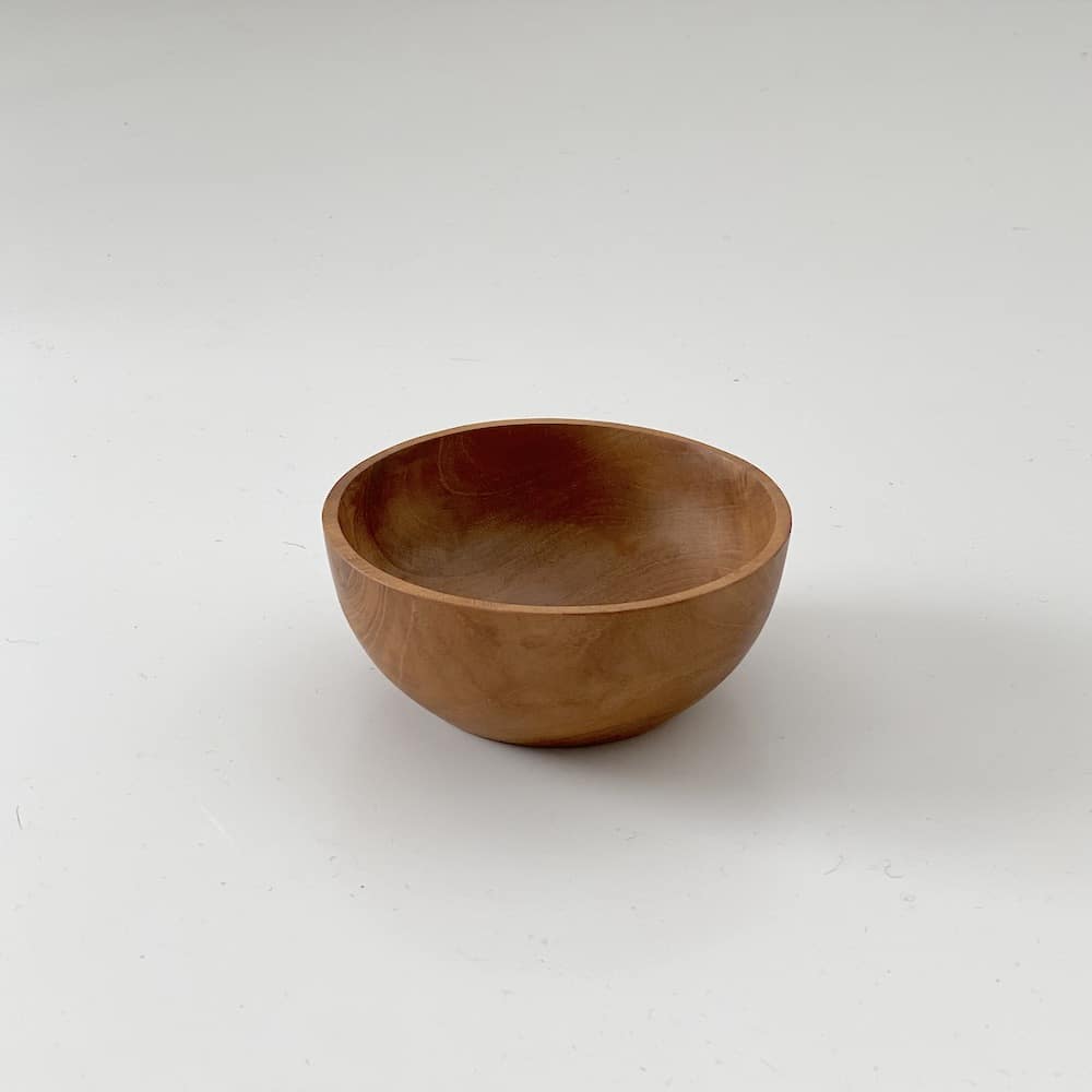 Skålene er håndskåret i bæredygtigt teaktræ, der er en meget funktionel træsort i køkkenet. Den naturlige mængde af teakolier gør træet modstandsdygtigt overfor fugt og bakterier; Og eventuelle ridser absorberes naturligt ind i træets fibre.