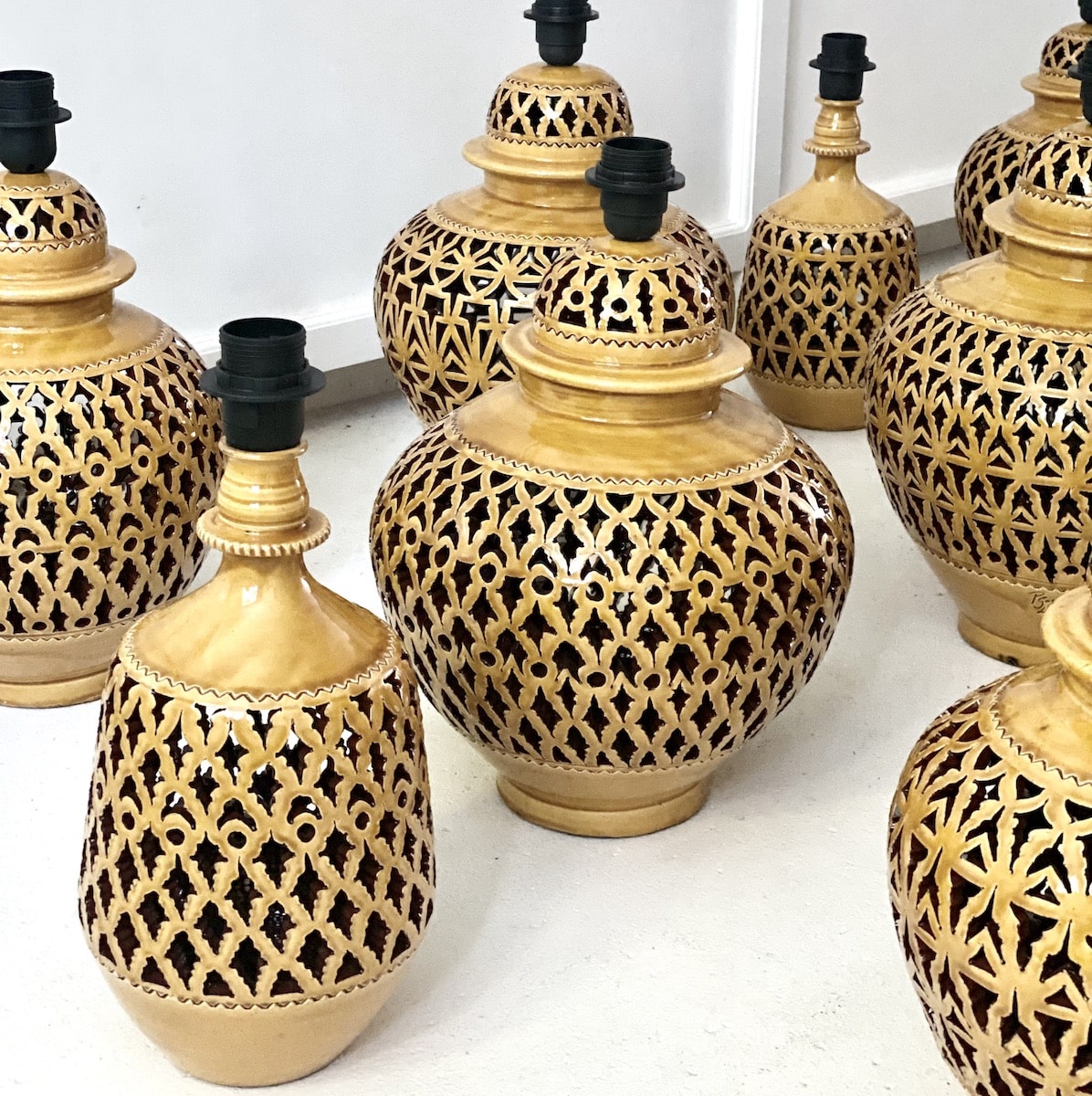 SKØN unika bordlampe i keramik, håndlavet i det sydlige Spanien, hvor de gamle traditioner fra Andalucien møder magien fra 1001 Nats eventyr i Marokko. Lampefoden er håndlavet af en lokal keramiker i en lille spansk workshop. Familien har igennem 5 generationer crafted det smukkeste keramik baseret på et miks af gamle, stolte spanske samt nordafrikanske traditioner, farver og mønstre.