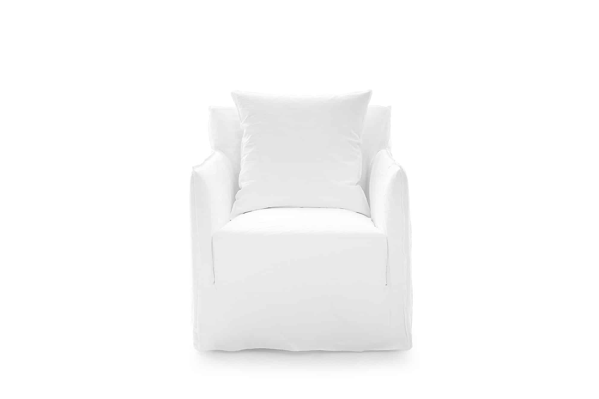 Denne elegante lænestol fra Gervasoni Ghost serien er designet af italienske Paola Navone. Den er opbygget med en trækonstruktion, med flere lag af polyuretan skum, hvilket gør den dejlig blød at sidde i.