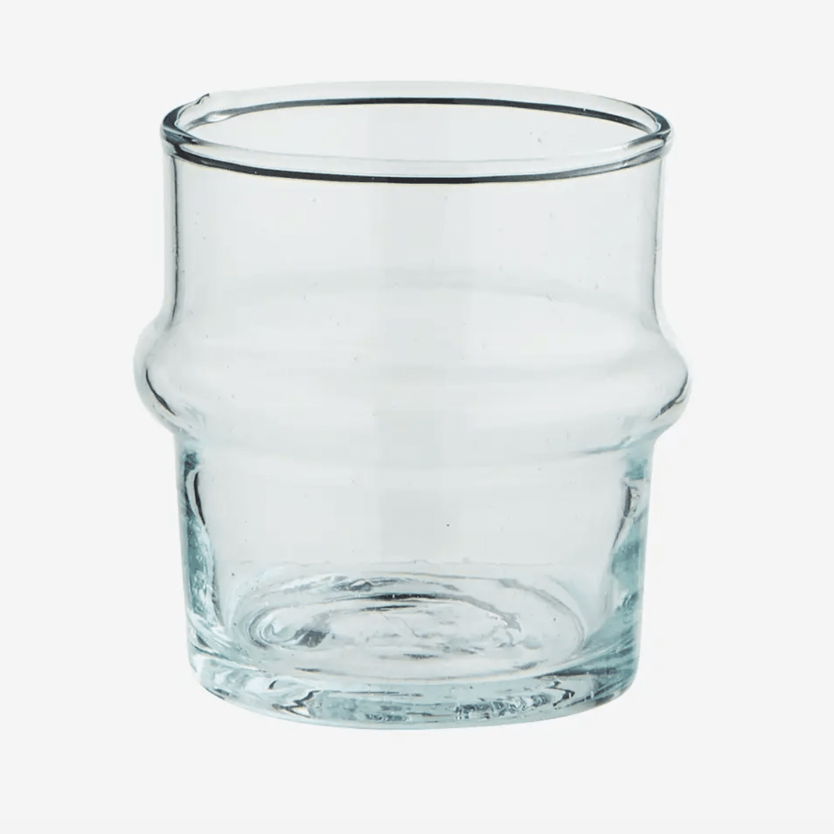 Glas – Marrakesh Klart H6 cm Mini STØRRELSE: H6 x Ø5,5 – 10 cl MATERIALE: 100% genbrugs glas. Tåler både varme og kolde drikke. FARVER: Klart glas. Fåes også i grønt og olivenfarvet glas ORIGIN: Marokko siden 1946