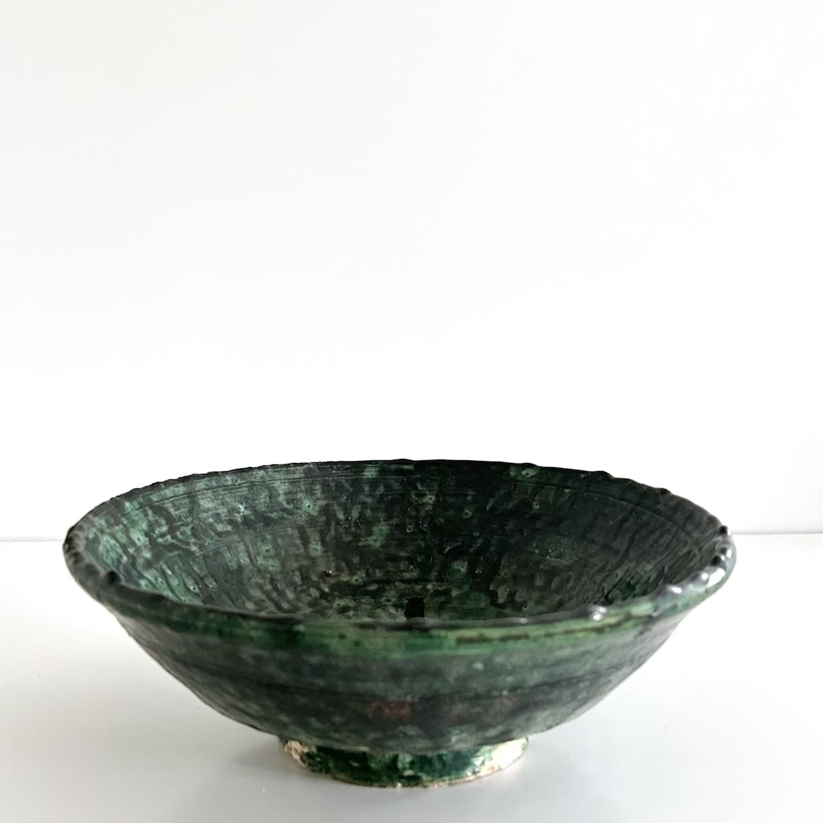 OPRINDELSE: Den unikke keramik er skabt af en lokal keramiker, der bor og arbejder i den lille by, Tamegroute ved Draa flod dalen i det sydlige Marokko. Vi har fundet den dygtige keramiker i samarbejde med en af vores marokkanske soul partnere. Tamegroute keramikken hører blandt de ældste håndværkstraditioner i Marokko. Det gamle craftsmanship skabes ud fra en unik proces hvor keramikken formes af ler fra moder natur der tørrer i store, udgravede gryder i jorden og efterfølgende brændes over åben ild i en af de 7 udendørs ovne, der deles af byens keramikere.