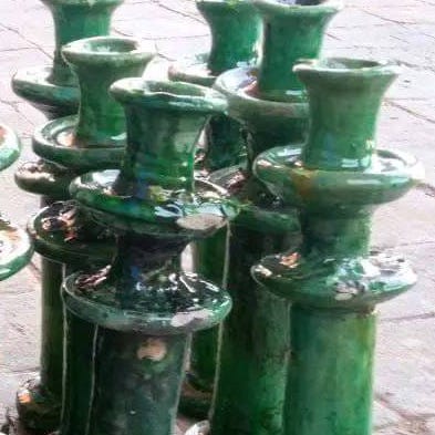 FARVER: En unik grøn farve der altid falder forskelligt ud i sin nuance. Glasuren er en hemmelig mixtur blandet af familiens kvinder baseret på naturlige ingredienser fra det omkringliggende landskab – bl.a. kul, kobber, klippesten samt en særlig ‘byg’ suppe. Opskriften er overleveret fra generation til generation blandt keramikerne i den lille landsby, og den komplicerede blanding og proces deles ikke med andre udenfor landsbyen.