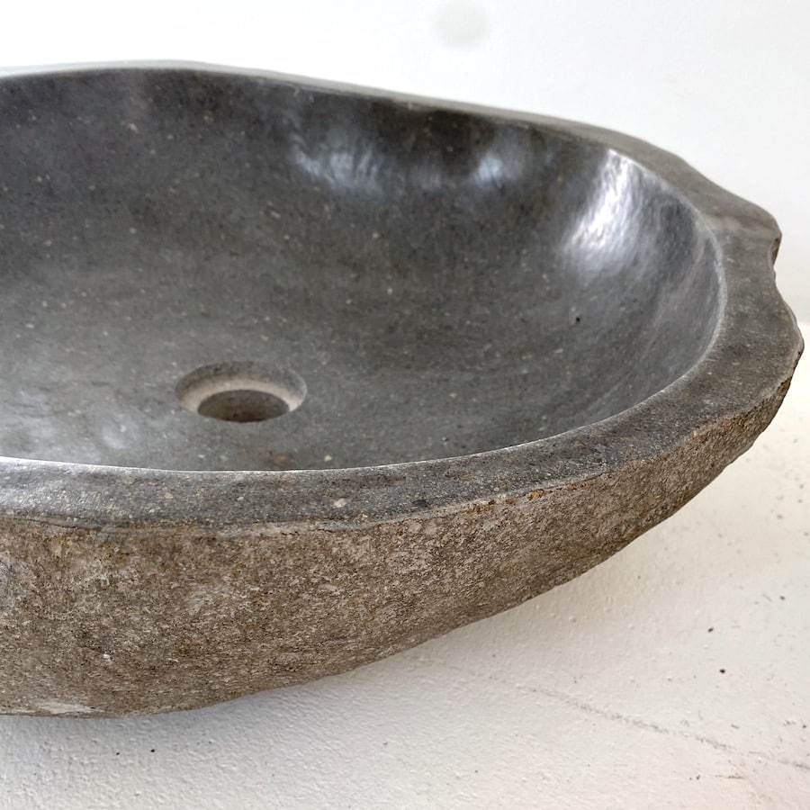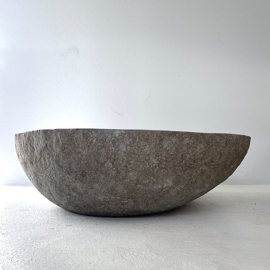Den smukke håndvask fra Bali er manuelt udformet i et stykke flodsten fra Moder Natur. Hver vask er fuldstændig unik i sin størrelse, form, farver og aftegninger, der er præget af stenens liv i naturen.