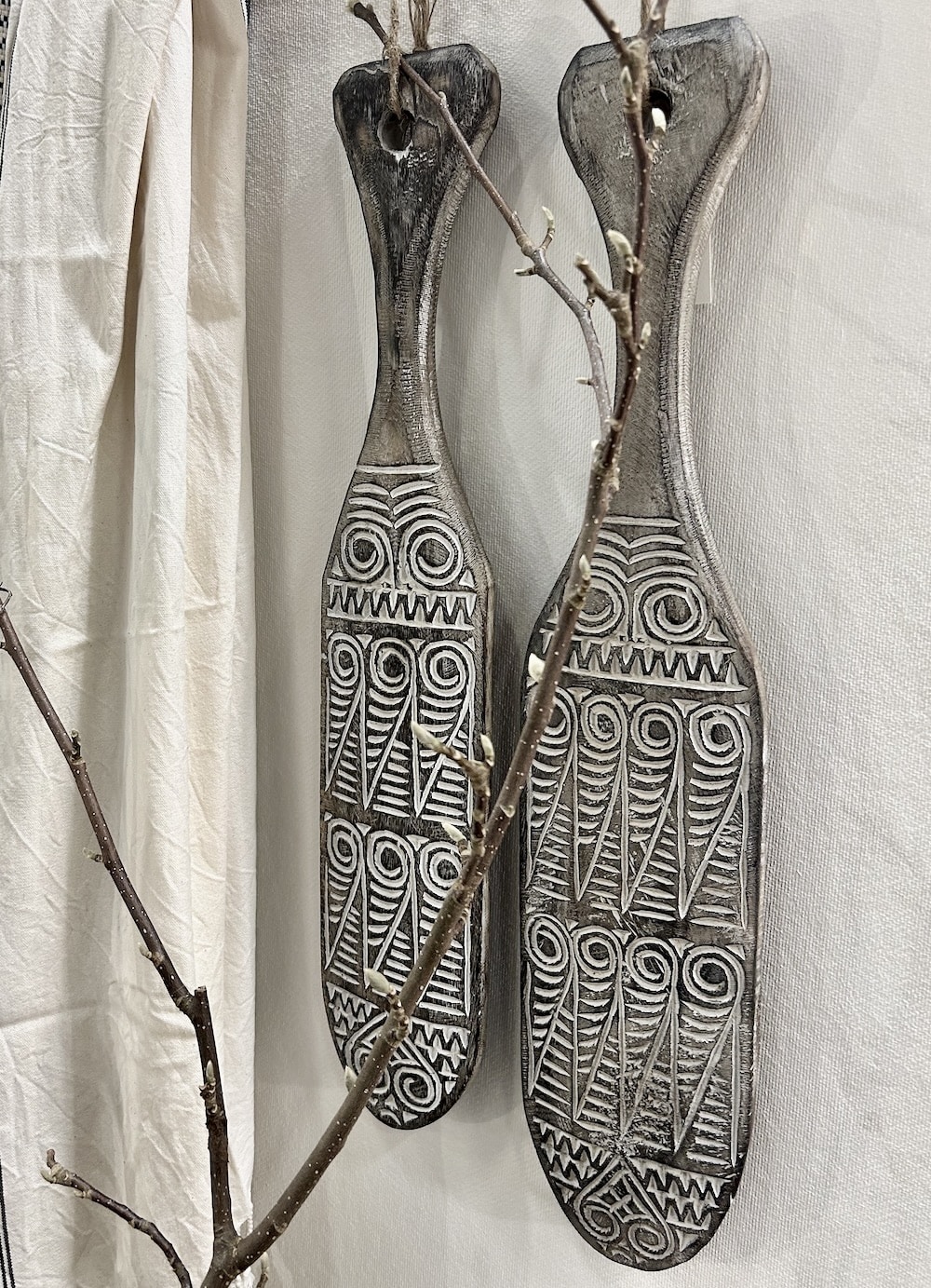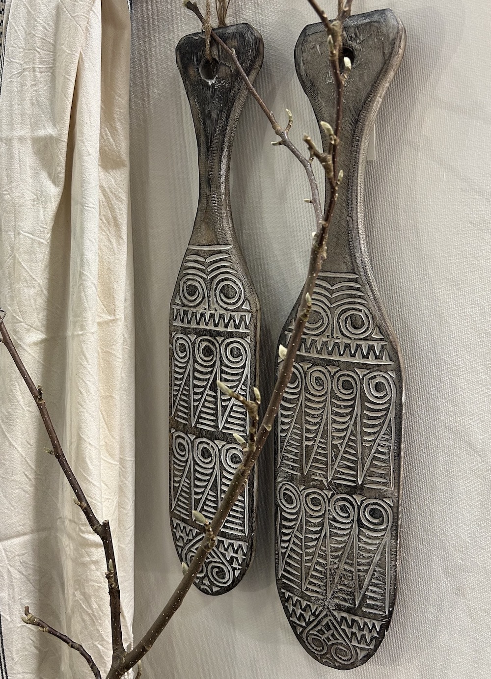 De charmerende paddle bats er håndskåret i 100% suar træ med spirituelle mønstre og symboler fra ‘TIMOR stammen’. Hvert bat er et unikt stykke håndværk, crafted med kærlighed og passion efter gamle stammeritualer og traditioner, der er videreført fra familie til familie – og mand til mand igennem generationer.