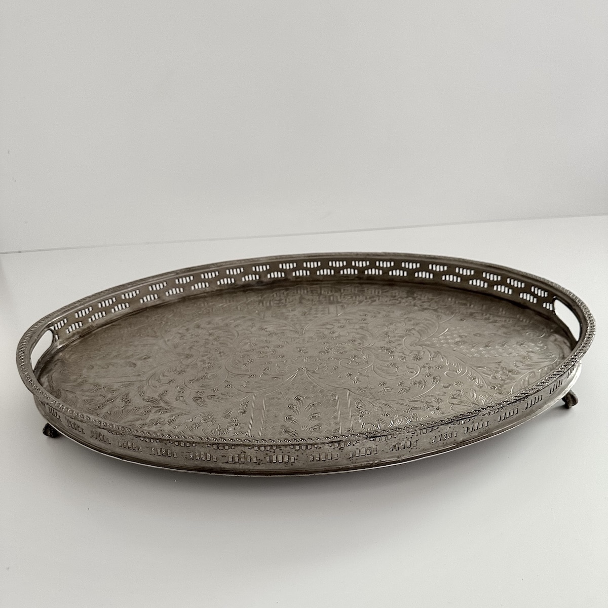 Den gamle vintage bakke har traditionelt været anvendt som the- og serverings fad i en Marokkansk husstand. Her er tale om en af de helt ‘rigtige’, gamle serveringsbakker fra Marokko – et UNIKA fund! Den er i fin stand med netop den patina, der gør den lækker og fyldt med sjæl.