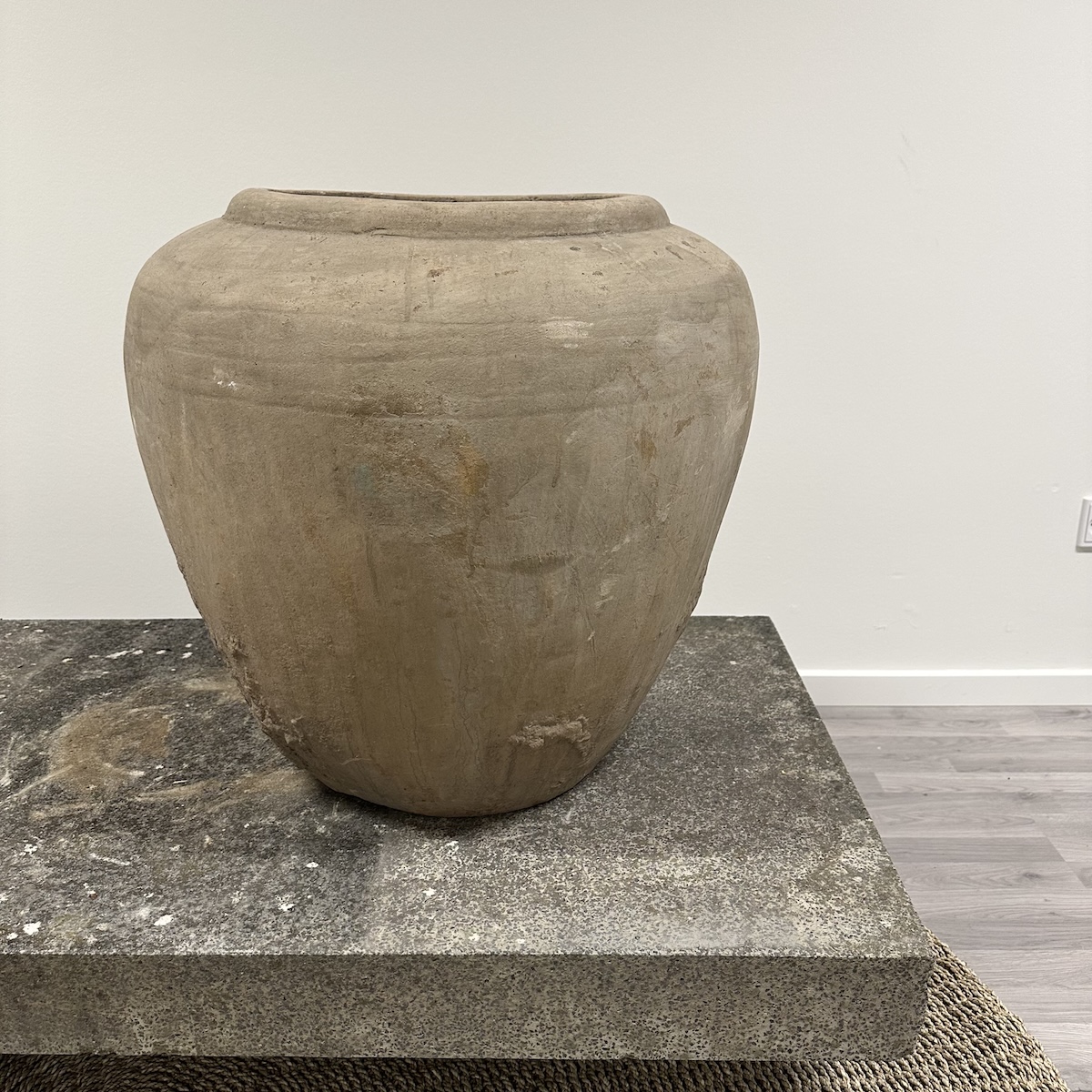 FARVE OG PATINA: Krukkens naturlige slid og patina udstråler dens gamle sjæl og historie der vidner om en lang alder efter mange års brug og fysiske rejser. De krukker der er særligt slidte er blevet nænsomt restaureret. Skævheder, ujævnheder, små skår er en del af krukkens unikke historie, sjæl og charme. OPRINDELSE: De gamle krukker er håndlavet på Bali og Java i det gamle Indonesien. Vi har fundet dem i samarbejde med en lokal soul partner på Bali Krukkerne er en del af Indonesiens tusinde år lange historie for craftsmanship af ‘pottery’. Hver eneste krukke har en unik historie fra det gamle Indonesien forankret i skøn blanding af nytteværdi og symbolik. Krukkerne blev oprindeligt brugt til opbevaring af mad og vand i dagligdagen. Især de uglaserede krukker var praktiske til opbevaring af køligt vand og blev oftest placeret i haven. Krukkerne blev i mange tilfælde et symbol på rigdom, status og familiehistorie. Nogle krukker blev begravet sammen med deres ejere. Andre er gået i arv igennem generationer. Ofte malede man kridttegninger og husnumre på krukkerne, så man kunne skelne dem fra hinanden. Den unikke signatur ses stadig på nogle af krukkerne som en charmerende detalje. BRUG: Vi anbefaler, at krukken primært bruges til indendørs brug i din bolig eller arbejdsplads, i et atelier, orangeri samt i drivhuset. Bruger du krukken udendørs anbefaler vi , at du stiller den under et overdække samt sikrer krukken mod frosten, da der ikke er et afløbshul i bunden. Hvis du bruger krukken til planter anbefaler vi, at du for en sikkerheds skyld forer krukken indvendigt med en plastik sæk, en balje eller lignende isolering. Krukken er gammel, så små revner og krakeleringer kan forekomme. Derefter kan du lægge et lag lecakugler i bunden af foringen og følgende jord samt plante. Derudover anbefaler vi altid, at du bruger en underskål eller skåner, så den naturlige kondens der danner sig under lerbunden ikke beskadiger dit underlag.